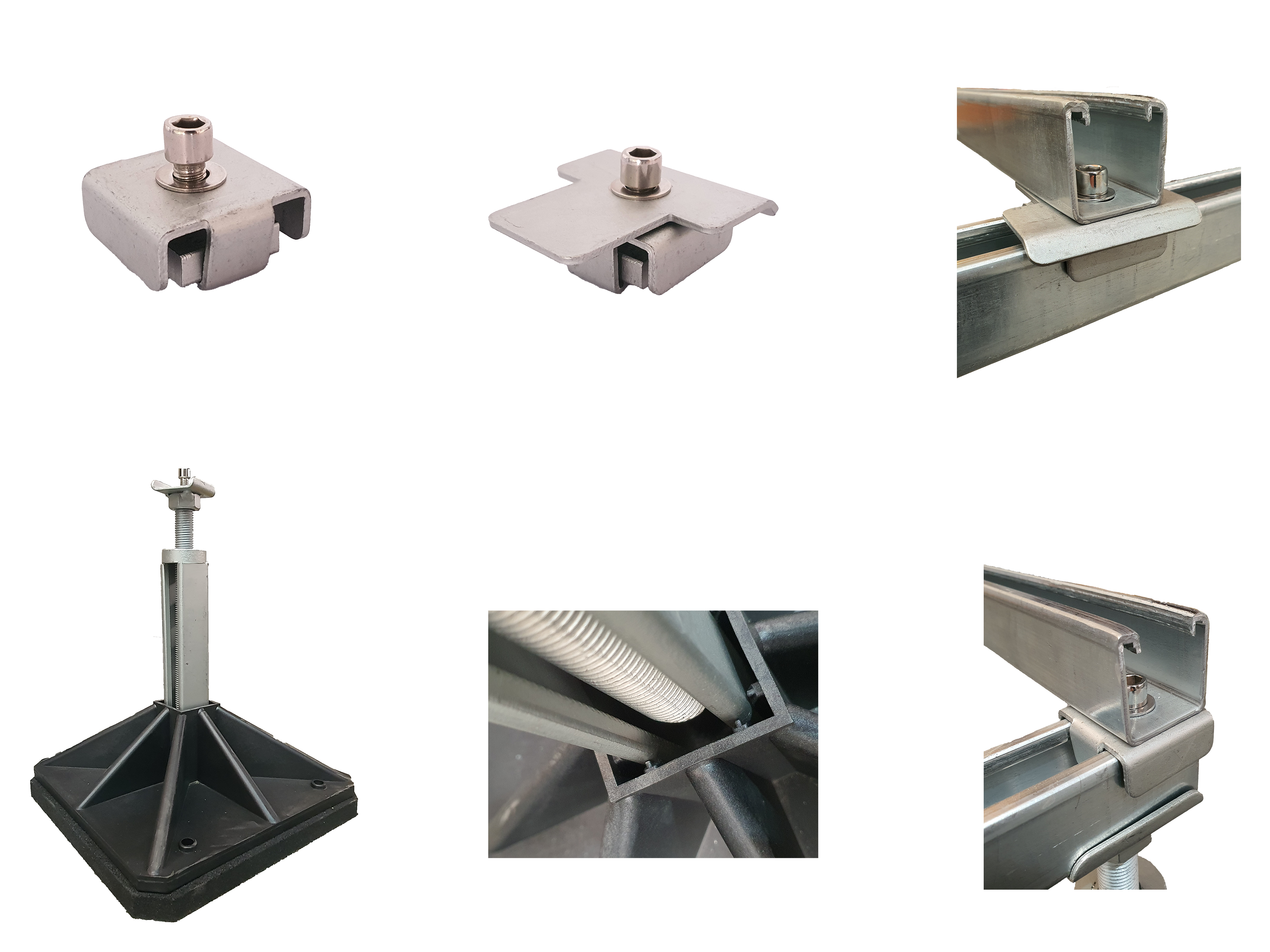 Gracias a sus componentes, la estructura se adapta perfectamente a las necesidades de diferentes tipos de instalaciones (aerotermia, unidades exteriores…) según las necesidades del cliente, proporcionando una solución robusta y resistente, garantizando una fijación segura y duradera incluso en condiciones climáticas exigentes.